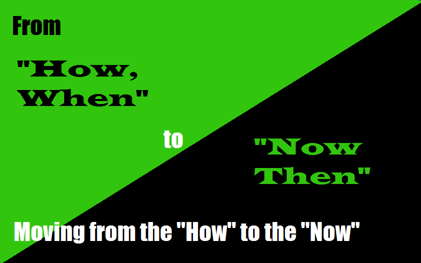 Some of the biggest worries of the Christian's walk come from not knowing how God is going to do something and when is it going to happen. But instead of living in this state of "How, When", I want to be in the state of "Now Then". God has already given us everything that we need to do what needs to be done. Every gifting and every spiritual attribute we will ever need to spread the good news of Christ is already rooted inside of us from the moment we are saved.So how do we get out of "How, When?" and walk into "Now Then"?